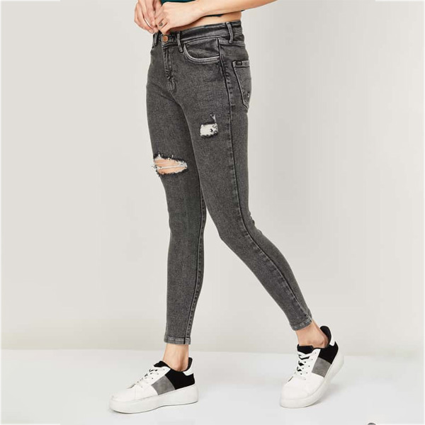 Flaunt the right fit with these stonewashed jeans, which is designed with 5-pockets and has a button closure.